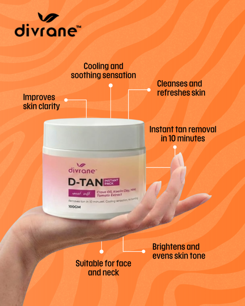Do you need a faster solution? Choose the Divrane D-Tan Instant Pack. It is specifically designed for busy people who want instant results. This pack stands out because it uses high-quality ingredients like Clove Oil and Tomato Extract. These botanical extracts work together beautifully. They lighten dark spots and improve skin clarity in one go. Therefore, You will see a visible difference without any harsh chemicals. It is truly the best D tan pack for a quick glow.